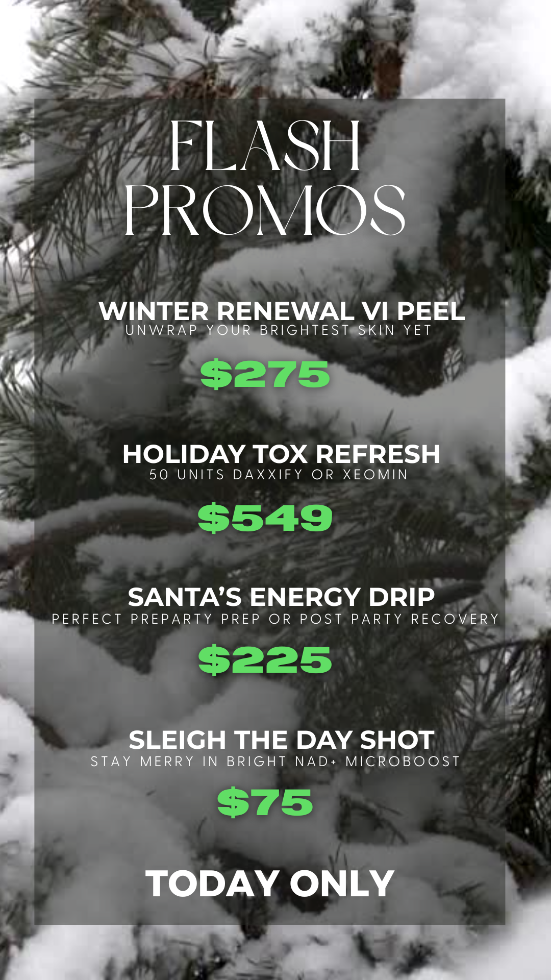 All treatments must be purchased and completed today.